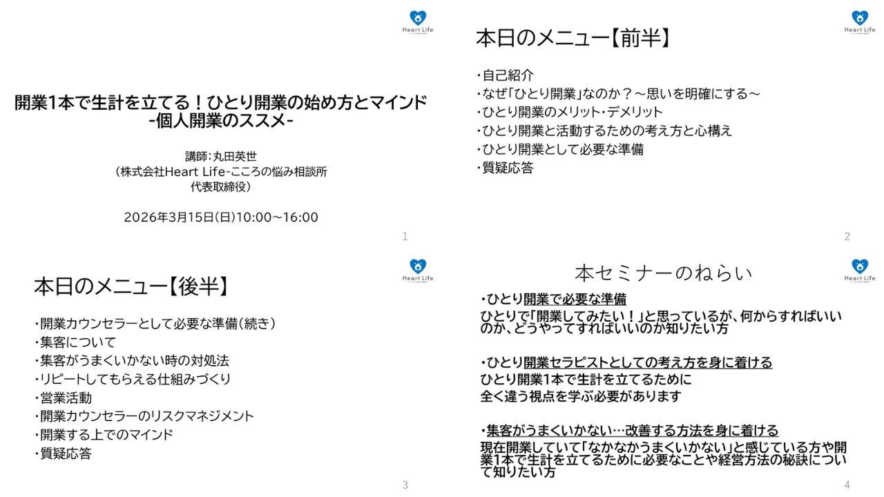 - カウンセラーで「開業したい」とお考えの方はこのセミナーを受講すれば今日から取り組めます